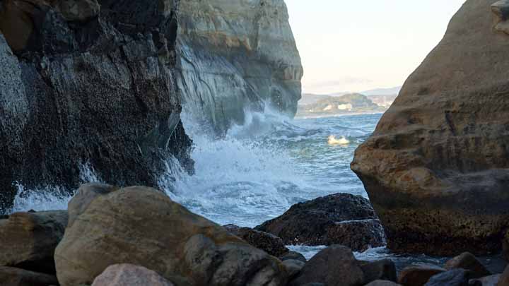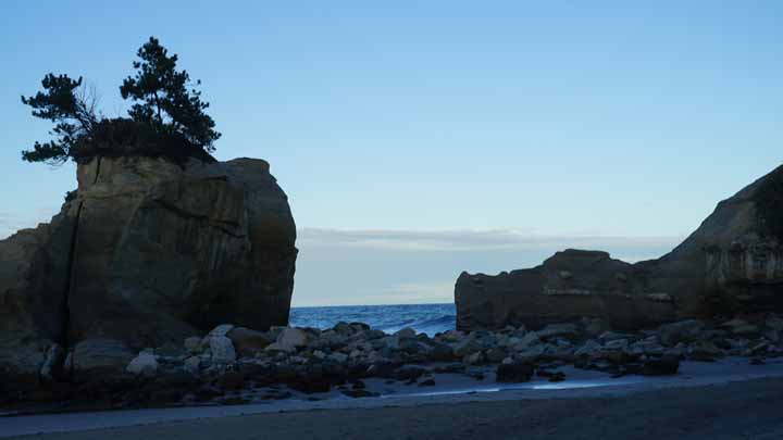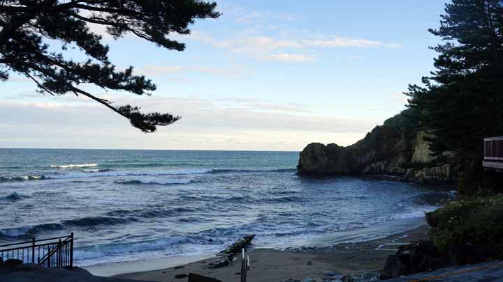 2時半に滝を離れ、鵜の岬を見学後、北へ向かい、次の観光地高戸小浜海岸には15時半に着いた。ここは「日本の渚100選」に選ばれている海岸で切り立った海食崖に挟まれた二つの入江をもつ美しい景勝地。洞窟から見る太平洋も趣があってよい。