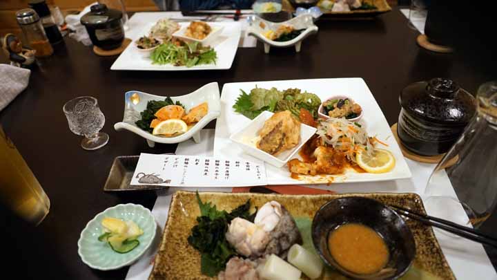 19時からあんこう鍋フルコースどぶ汁プランで、アンコウの刺し身、から揚げ、煮つけ、などなどフルコースが出て、お腹がいっぱいになってしまう。お酒は生ビール以外に北茨城地酒(アンくんとコウちゃん)も飲んだ。茶碗蒸しとデザートも旨かった。今回、やむなく不参加になったTさんにLINEで写真を送ってあげたら、羨ましがられた。