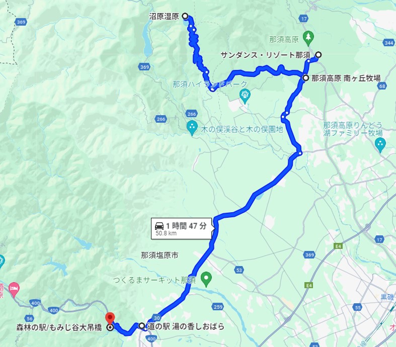 いったんは宿に戻ってお湯に浸かり小休止の後、塩原温泉地区まで走った。当初は那須ゴンドラに乗ろうとしたが、昨年夏から営業中止になってるとのことで諦めた。14時に道の駅「湯の香塩原」でトイレ休憩後、すぐ近くと思って行った「もみじ大吊橋」は結構距離があり、蕎麦屋の駐車場で戻ろうとしたら、右側に看板が見え、50m程先だった。通行料有料と知り驚いたが高齢者と小学生以下は200円と聞いてそれなら通ろうかと行ってきた。320mの吊り橋で涼しくて快適だった。宿に戻ったのは16時半。本日の走行距離は80km。