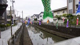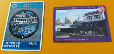 このままでは、昼ごはんが遅くなるので先に栃木市倭町の「蔵のまち」の駐車場に12時15分到着(100km走破)。蔵の街を歩いた。その前に観光案内所でカラーマンホールの撮影できる場所を訊いて、マンホールカードも貰った。埼玉川越や千葉佐原の蔵のような街並みを想像していたが、たいしたことはなかってガッカリした。川にはミニ鯉のぼりがたくさん吊ってあった。
