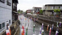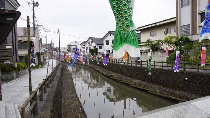 巴波(うずま)川は鯉のぼり飾り |