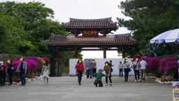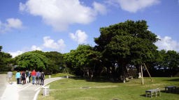 9時丁度にチェックアウトして今日の唯一の観光地首里城公園に9時20分に到着。暮れに泊まったHilton首里城の横を走ったので懐かしかった。時間の関係もあって、首里城の有料の場所には入らず、無料の守礼邦、東の展望台を散策した。園内の売店でオリオンビールのタンクトップを自分用の土産として2200円で買った。10時20分にバスは空港に向う。