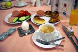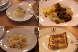 お昼のレストランでは、「さくらんぼジュース」やプリンなどがでた。プリンなどデザート類は日本人には甘すぎる。