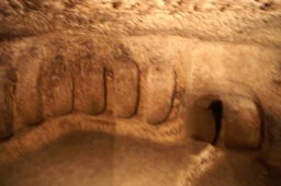 バスで少し行ったところにカイマルク地下都市があり、其処にも入ってみた。地下4階まで掘られて、結構広い洞窟都市である。外敵から身を守るために暗くしたり、途中落とし穴などを設営した跡が伺える。明日、またカッパドキアをゆっくり歩く予定があるのだがとても楽しみ。