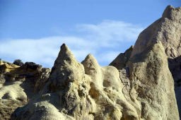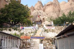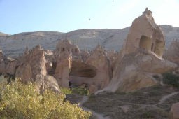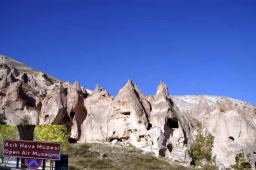 カッパドキアはたいへん広大で2日間で見て廻ることはできない。全体を見るには気球からの旅がある。しかし、今回ツアーには組み込まれていない。まずゼルベ野外博物館に行った。聖堂や住居が無数にあり、山のそこここに点在していた。奇岩の中に作られた住居の外観を見ながら約30分ほどの散策を楽しめた。1000mを超える高原なので珍しい花や草が多いようだ。