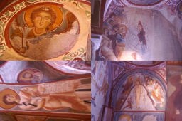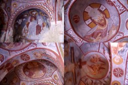 次に行ったのがゼルベ野外博物館。ここには岩の中に教会があり、「暗闇の教会」「蛇の教会」「サンダル教会」などミドコロが多く、特にフレスコ画の保存状態は良かった。昨年イタリアでフレスコ画はいろいろ見てきたが、それに負けないほどだ。