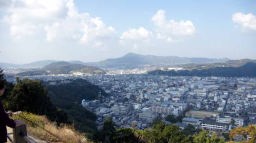 今から最初の目的地「洲本城址」に向かう。11:00、高台の駐車場から洲本城址を目指す。洲本城は存在する地から三熊城とも呼ばれている。ひょうご森林浴場50選に選ばれている「三熊山」に建っている。高齢者が多いので階段ではなくて、迂回してゆっくりと坂道を登っていく。なんせ、dachs飼主夫婦を除くと、90・88・87歳のトリオなのだ。余談だが、75歳以上を後期高齢者、65歳以上を前期高齢者と呼ぶに対し、一部の地域では、85歳以上を末期高齢者と呼ぶそうな・・・