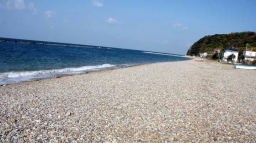 ここから車は若干北に向かいながら淡路島西岸を目指してゆく。30分ほど走らせて五色浜海岸に到達。海水浴シーズンを過ぎているので、人は誰も居ない。このあと、慶野松原でも「白砂青松」を見て海岸をゆっくりと鑑賞した。