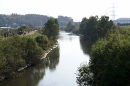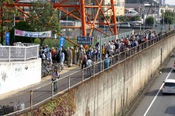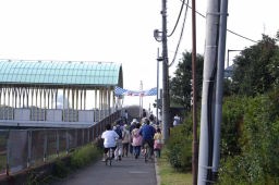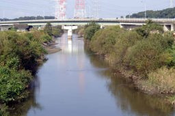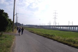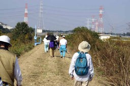 ここから神崎川の川沿いを2キロ弱歩くのだが、靴が快適だった。いつもアスファルトやタイル、コンクリートの道を長く歩くと足に負担がとても大きく感じるが、土と草に覆われた道はとてもソフトで足の進みがとても快く感じられる。久しぶりにウォークの快適さが感じられ、嬉しかった。土の道は乾燥すると風で埃や雨がふると靴がめり込んで良いことが無いのだが、草などが生えているとそういう悪条件下でも快適になる。 右側に流れる川も思いのほか綺麗で、魚も棲んでいるようだ。