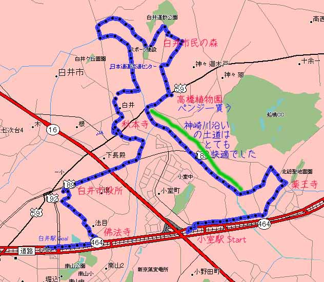最寄り駅から一駅の小室駅がスタートでもう一つ先の白井駅までの14Kmがゴール地点になる。最寄り駅から一駅先と言っても5Km以上あり、電車賃も300円もする。北総鉄道は国内で最高クラスの運賃だが、高架と地下を走っているので、踏み切りが一切無いのが自慢だ。午前9時半に駅を出発し、駅沿いに歩いてゆくと程なく、「弁財天」を祀る薬王寺が見えてくる。弁才天は意外に小さく坐像の高さは40センチ程度だった。ココを出るとすぐ「フナカン」への分岐路になるが、ここを右に歩いてゆくと、我が家まで徒歩で帰れる。案内に無かった宗像神社が見えたので覗いてみたが、参道の途中に注連縄が張ってあり、先に進めなかったので引き返す。