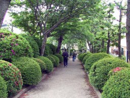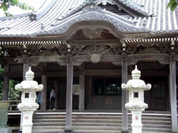 天気は曇りがちで温度もTシャツでは少し冷えるくらいだったので、ジャージを着て出発。新京成線で新鎌ヶ谷駅から薬園台駅まで約10分ぐらいで到着。駅で上のルートマップを戴き、まずはすぐ近くの八幡神社へ。ここから約1.5キロほど歩くと大宮神社。大宮神社では小さいが能舞台もあった。ここからゆるぎ地蔵まではすぐ。通称「ゆるぎ地蔵」の名で親しまれている木造のお地蔵さんで、船橋市の文化財。コースから少し外れるが築後約140年を経た旧近藤四郎左衛門家の長屋門「東葉門」が現東葉高校の正門になっている。今日は土曜日なので正門は閉まっていた。門の近くの民家の入り口に変わった色の棕櫚のような花があった。東葉高速鉄道の手前には東福寺が。東福寺から畑や住宅を見ながら約15分ほど歩くと観行院が現れる。観行院は新四国八十八箇所の第15番札所であり、ここは鐘楼が立派。