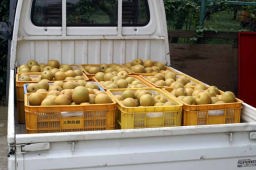 季節的に梨の実がたわわに実っており、ウォークのシンボルになっている。時期的に幸水梨はほぼ終了で、今は豊水種の梨が最盛期。梨が「無し」につながると縁起が悪いので梨の実は『ありのみ』と縁起を担いで言うらしい。梨農家の人は不作になるとイヤなので「今年のありのみは甘いかねぇ?」と謂うそうだ(ホンマカイナ?)。