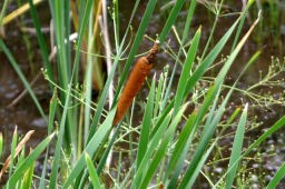 最寄り駅から5つ目の駅、新鎌ヶ谷には午前8時50分に到着し、駅近隣の写真を撮った後、ちょうど午前9時に出発。まず新京成線の線路に沿って最初に向ったのは同鉄道の車両基地。たくさんの電車の倉庫となっていた。既にこのあたりから汗が出始め、タオル生地のハンカチ(と言うか、ハンカチのタオル)を襟に掛けて黙々と前進。来週の高地旅行に備えて、少し早足で進む。車両基地から鎌ヶ谷カントリークラブの緑地に沿って北総鉄道の大町駅に向う。ここから大町の植物園の湿地に咲く雑草雑花を久しぶりに愉しんだ。大町植物園を出ると次の日本ハムファイターズ球場、市民の森、貝柄山公園への道は農道で両側は野菜畑と延々の梨畑。