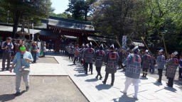 ちょうど本日は年に一度の『くらやみまつり』メインイベント開催当日。お昼すぎなのに、大勢の参拝客でごった返していた。残念ながら本番は午後6時前後からの夜祭で諦めざるを得なかったが、大きな太鼓や颯爽とはっぴを着た男女をみることもできた。そういえば、ちょっと前に訪れた小野神社門前でハッピの男女がいたので聞いて見たときもイ今からくらやみ祭に行くと言っていた。Tさんに『府中の語源や三多摩、都下』などに解説をされ、いろいろ教えてもらった上、屋台の飲み屋や駅前店舗で飲み相手としてお付き合いいただけた(大感謝である)。