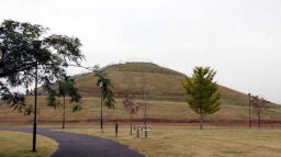 いざ、印西牧の原駅から元気に出発。駅を出てまずは印西市最高峰の大築山に到着した。最高峰と言っても、海抜41mで、千葉の最高峰「愛宕山(南房総市)」の408mに比べるとその10分の1のスケール。ご覧のとおり、階段で登っても、100段ほどで登りきれる。黄砂の影響か、少しもやっていたので、頂上からの写真は撮らなかったが、冬の晴れた日なら頂上から東京スカイツリーがよく見える。