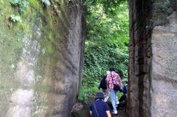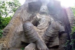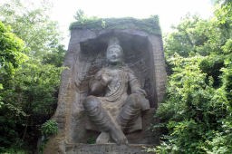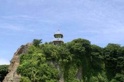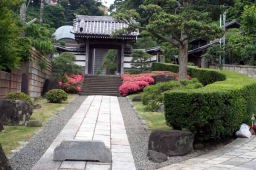 鷹取山の展望台公園からハイキングコースを少し先に行くと立派な弥勒菩薩石像。昭和40年頃に地元在住の彫刻家が造った立派な磨崖仏。ここで、疲れた体をひととき休める。その後、追浜駅付近に戻り、良心寺の境内で一服。次はもう一つのメイン景島に向う。
