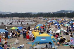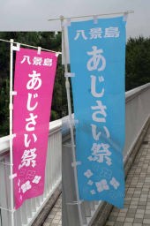 八景島は横浜市。横須賀スタジアムから20分ほど歩き続けると夕照橋で、ここで横須賀市と別れをつげる。野島公園を横に見ながら海の公園を過ぎればもう八景島はすぐそこ。潮干狩りや水遊びなのだろうか、海べの公園は海水浴シーズンのように人でいっぱい。八景島ではアジサイ祭が開かれており、ゆっくりあじさいと春のバラを見学できた。バラはもう遅すぎた感じがあり、あじさいは逆に少しはやい季節で中途半端な花観賞であった。