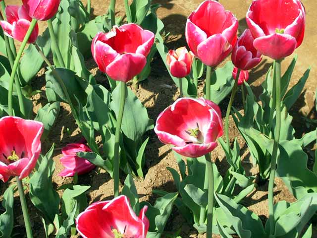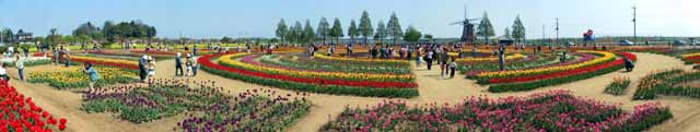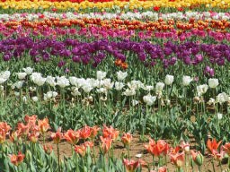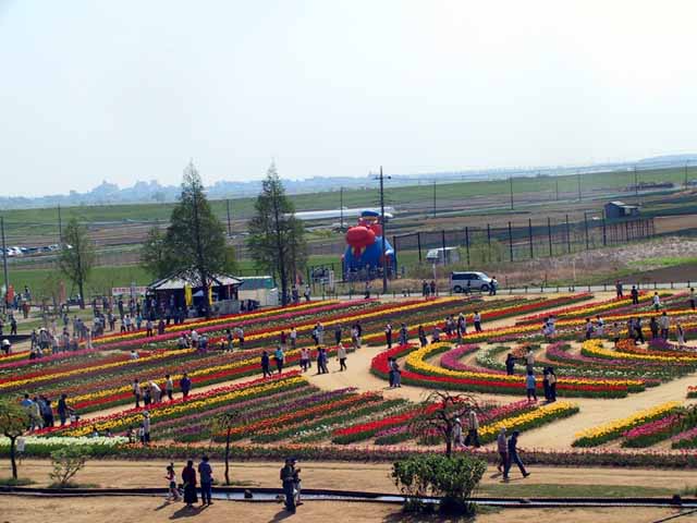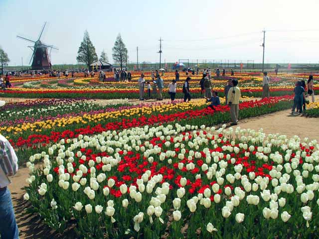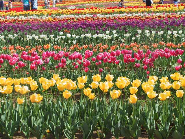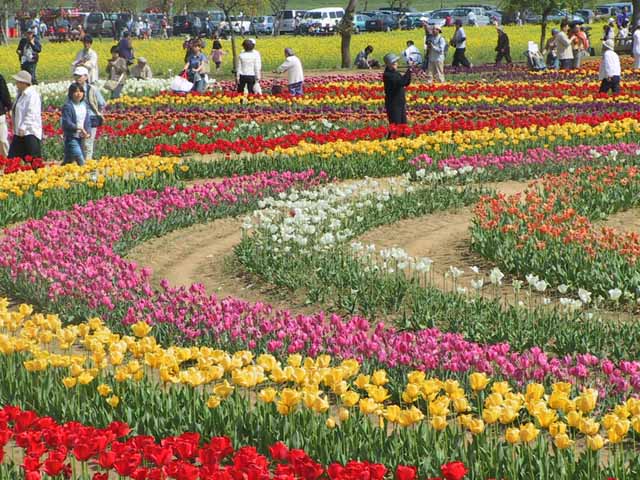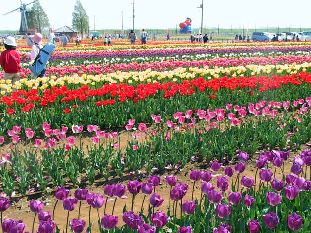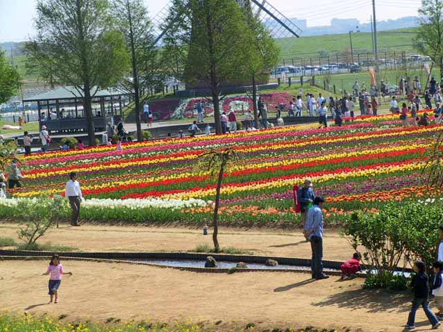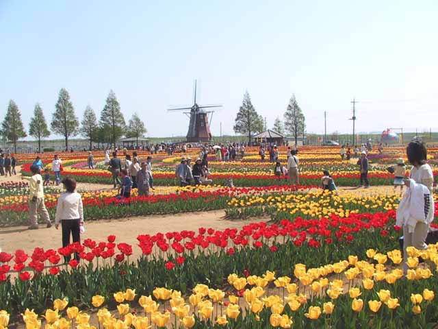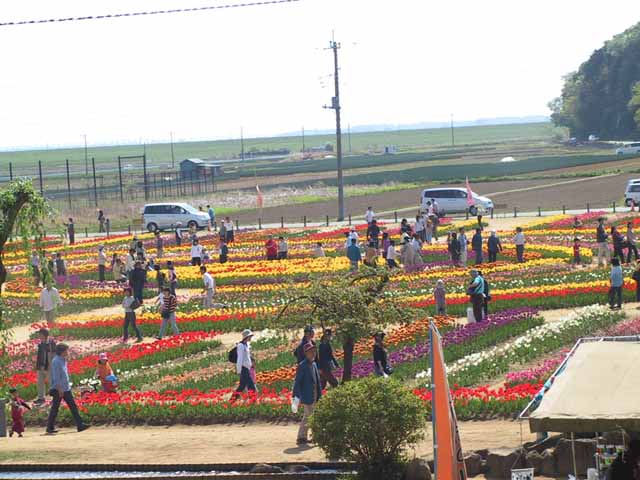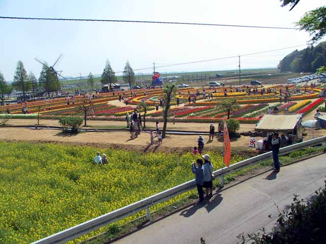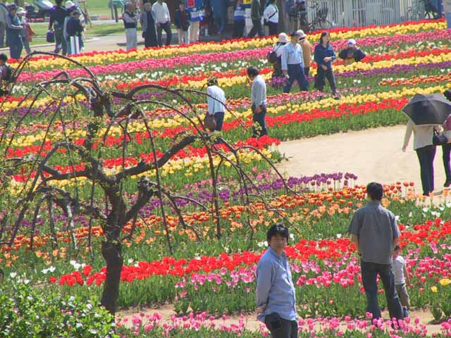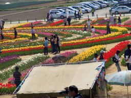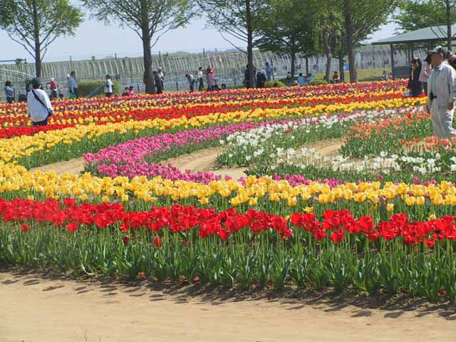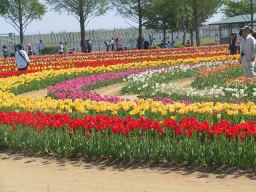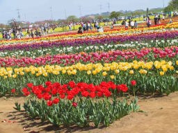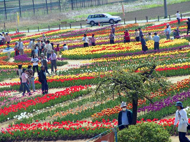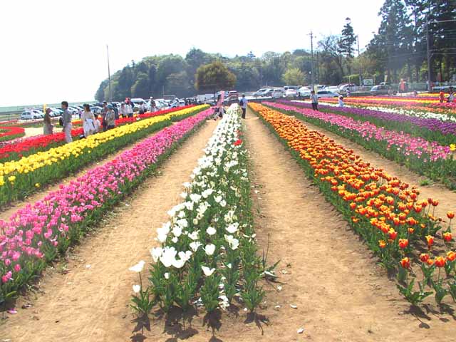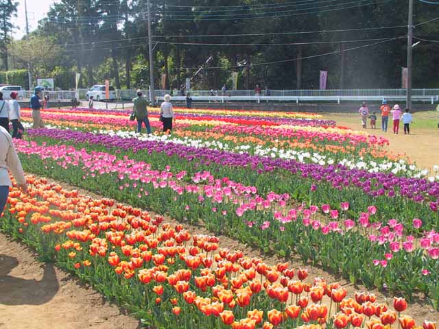 2004年4月18日(日)、柏市の曙山農業公園に朝2時間ほど行ってきた。大体4月イッパイは美しいチューリップが見られるのだが、今日は4月第3週の日曜日というのに、最期のサイゴという感じ(アップ写真を見ていただくとわかりますが殆ど枯れる手前)。今年は柏市の市制50周年記念ということもあり、周りでは新鮮野菜市場などが協賛で地場のとれたて野菜の大安売りもしていた。まずはチューリップを堪能してください。