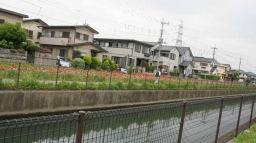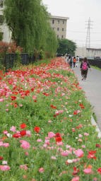 疎水をしばらく歩き退屈してきた頃に、本日のメイン「葛西用水路のポピー畑」が急遽華やかに顕われた。用水路の1700m以上にわたり、その両側にたくさんのポピーが咲き揃っている。まさに絶景だ。ポピーがこんなに長い距離に亘って咲いているのはdachs飼主にとってはたぶんはじめてだ。コース設定で最初の600mを両側を往復する設定をしていたが、なかなか飽きない。ゆっくりと見ていると、時間を忘れてしまう。11時にポピー畑に入ったのだが、この畑を出たのは正午をとっくに過ぎていた。距離は2キロ強だったが、1時間を切っての鑑賞ではとてもとてもこの畑の魅力は味わえないと思う。