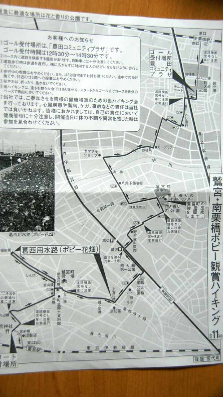 今年は東武健康ハイキングというのが年間22コース開催される。とりあえず、今日は鷲宮栗橋を歩いてポピー畑を見て来れれば・・・と考えた。