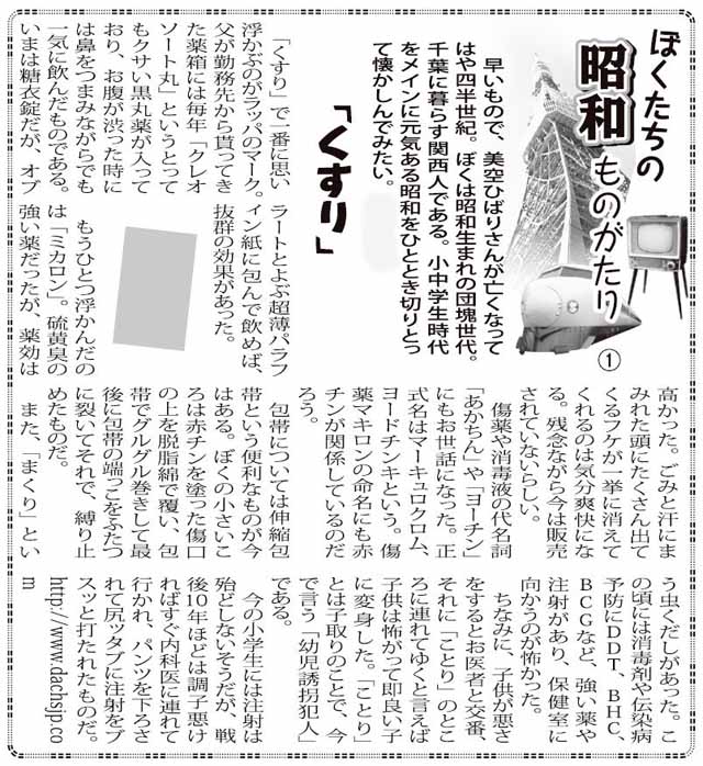 平成25年夏からふれあい毎日さんからお誘いがあり、毎月昭和の懐かしい話『僕たちの昭和ものがたり』を書かせてもらうことになった。