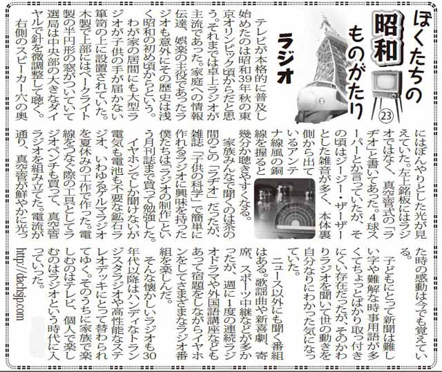 子どもにとって新聞は難しい字や難解な時事用語が多くてちょっとばかり取っ付きにくい存在だったが、そのかわりラジオを聞いて世の動きを自分なりにわかった気になっていた。