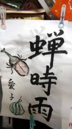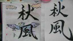 愛子様は2009年から近所のディサービスに10:00頃から15:30頃までお世話になるようになった。水曜日には、絵つきの習字をかけるのを楽しみにしています。2009年に手習いした一部です。