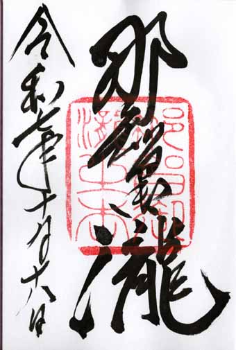 | 参拝日:令和7年9月17日 場所:和歌山県那智勝浦町那智山 名称:飛龍神社 備考:飛瀧神社(ひろうじんじゃ)は、和歌山県那智勝浦町那智山にある神社。熊野那智大社の別宮。那智滝自体が大己貴神が現れた御神体となっており、本殿は存在しない。拝殿もなく、直接滝を拝むこととなる。 |