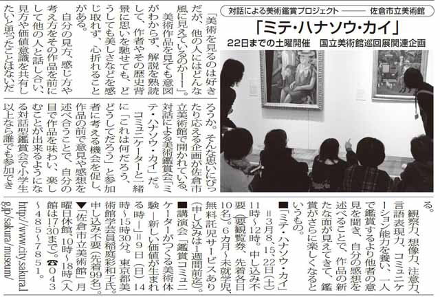 2014年2月12日、隣町の佐倉市まで車でとばして、佐倉美術館を訪問取材してきた。サブタイトルは『対話による美術鑑賞プロジェクト』。