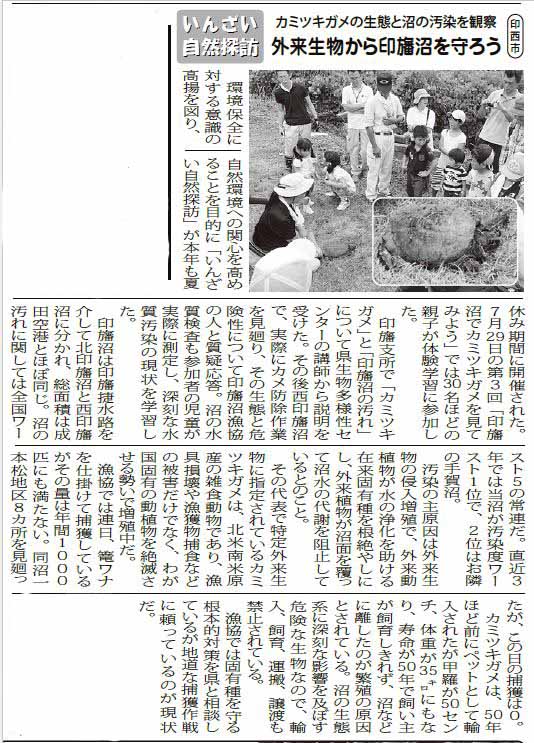 | 印西市 カミツキガメの生態と印旛沼汚染 |