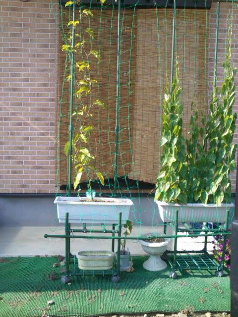 私の所はゴーヤでなく、「パッションフルーツ」と「琉球やまのいも」を植えています。